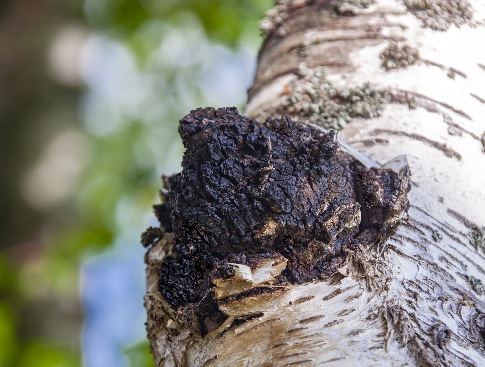 Unser Chaga-Pilz (Inonotus obliquus), auch bekannt als Schiefer Schillerporling, Tschaga oder Birkenporling, ist ein traditioneller Vitalpilz, der in den kalten Regionen Europas, Asiens und Nordamerikas wächst.