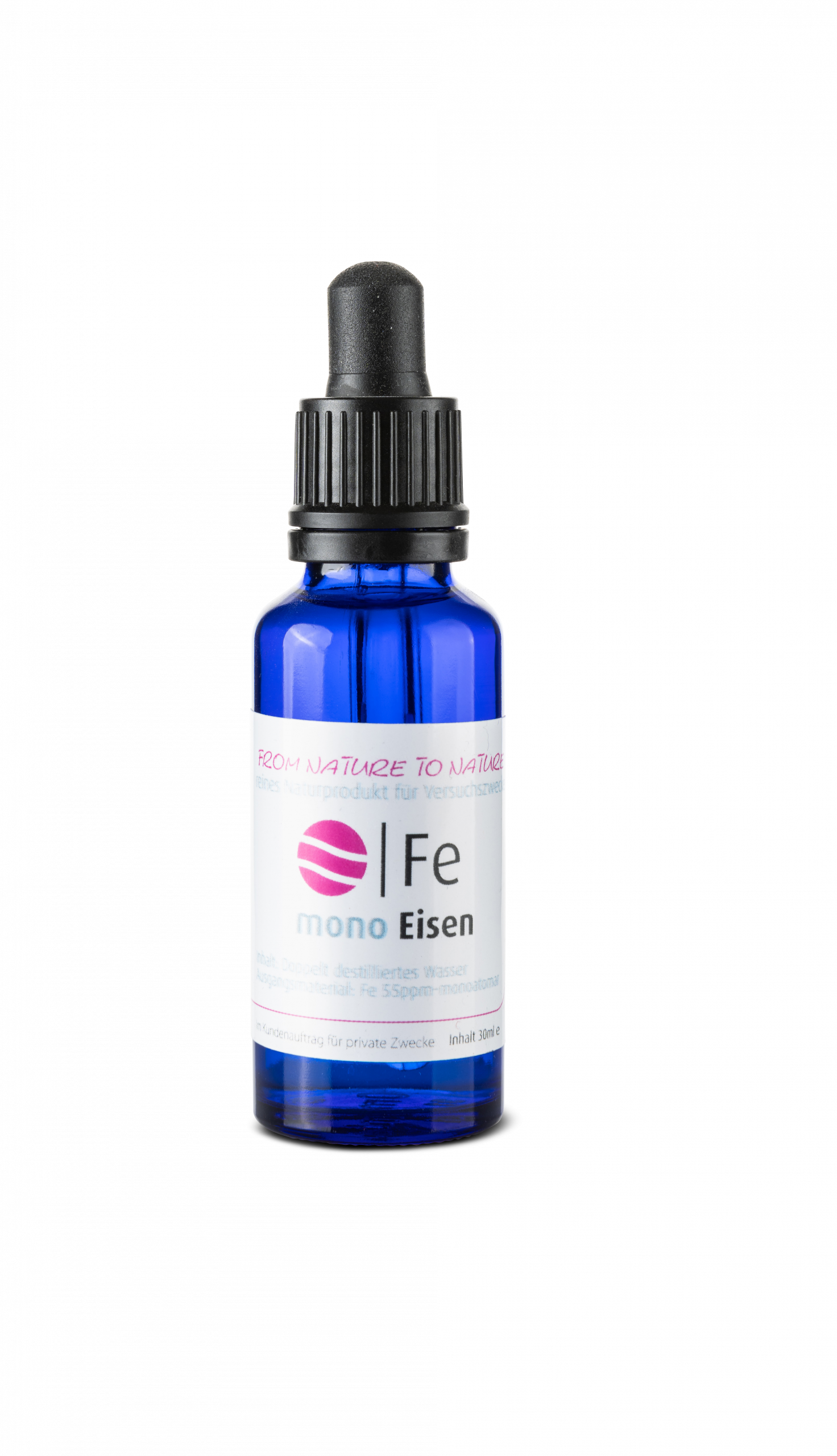 Mit einer Konzentration von 65 ppm und einer Reinheit von 99,93 % enthält es ausschließlich reine Eisenpartikel – frei von jeglichen Zusatz- und Konservierungsstoffen.